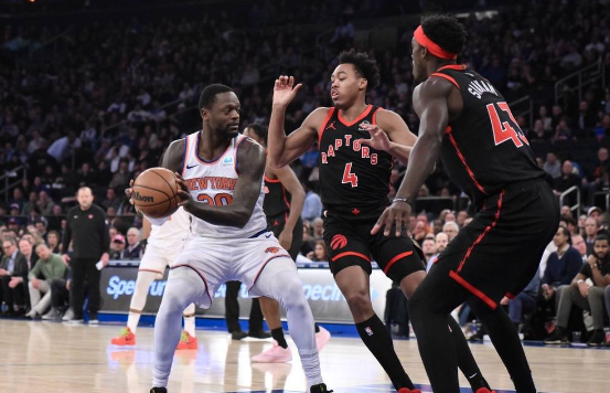 尼克斯队首发:朱利叶斯-兰德尔、RJ-巴雷特、杰伦-布伦森、丹特-迪文琴佐、杰里科-西姆斯